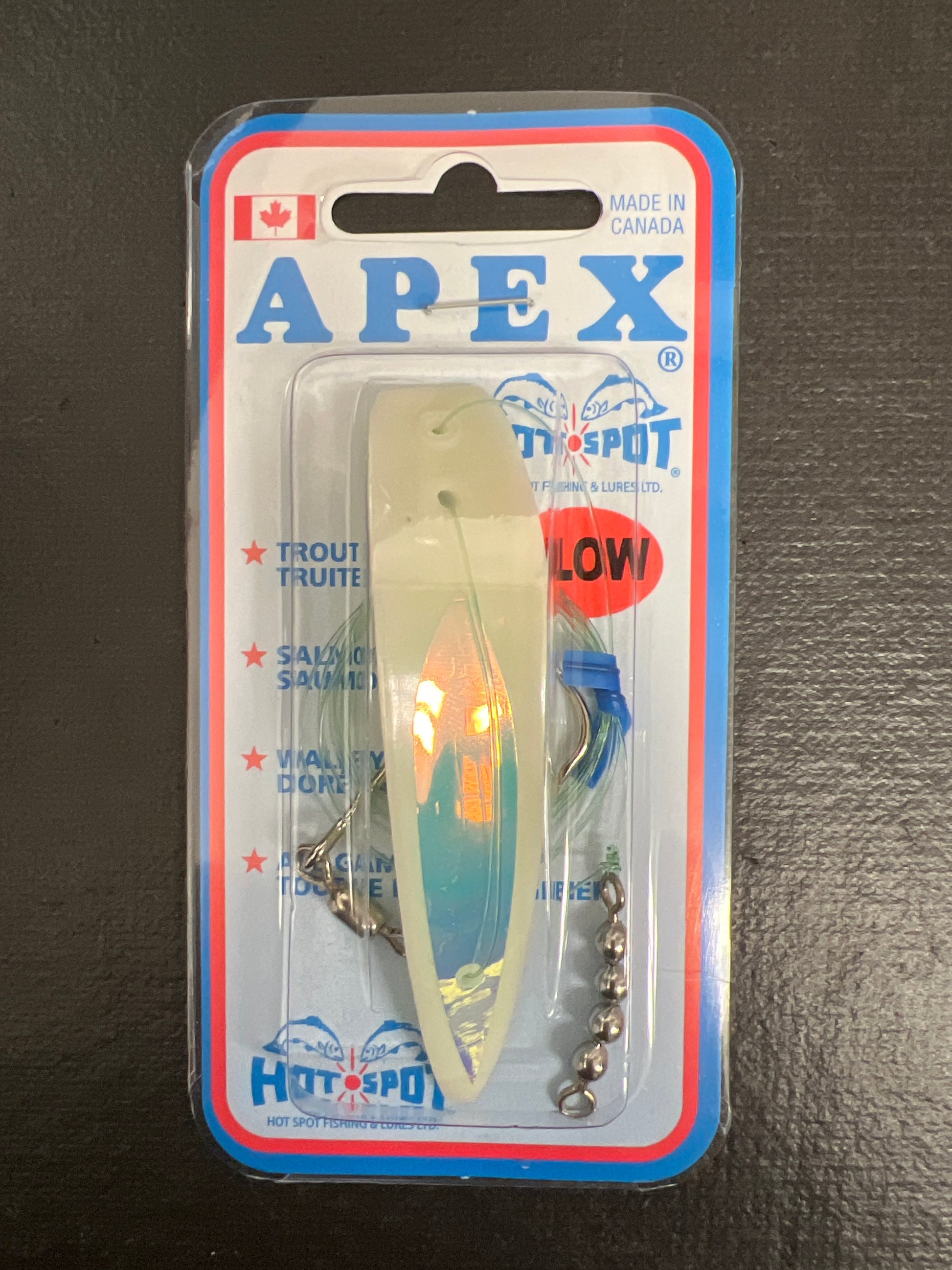Designed for trolling, the dodging and waving action of an Apex creates strong vibrations in the water. Often, the interactive vibration made by a wounded bait fish are the most enticing. The Apex lure duplicates these movements. Its contoured scope front surface causes a rapid, side to side, shaking action as it is trolled. The Apex will also dart violently from side to side and will spin from time to time.