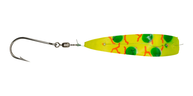Designed for trolling, the dodging and waving action of an Apex creates strong vibrations in the water. Often, the interactive vibration made by a wounded bait fish are the most enticing. The Apex lure duplicates these movements. Its contoured scope front surface causes a rapid, side to side, shaking action as it is trolled. The Apex will also dart violently from side to side and will spin from time to time.