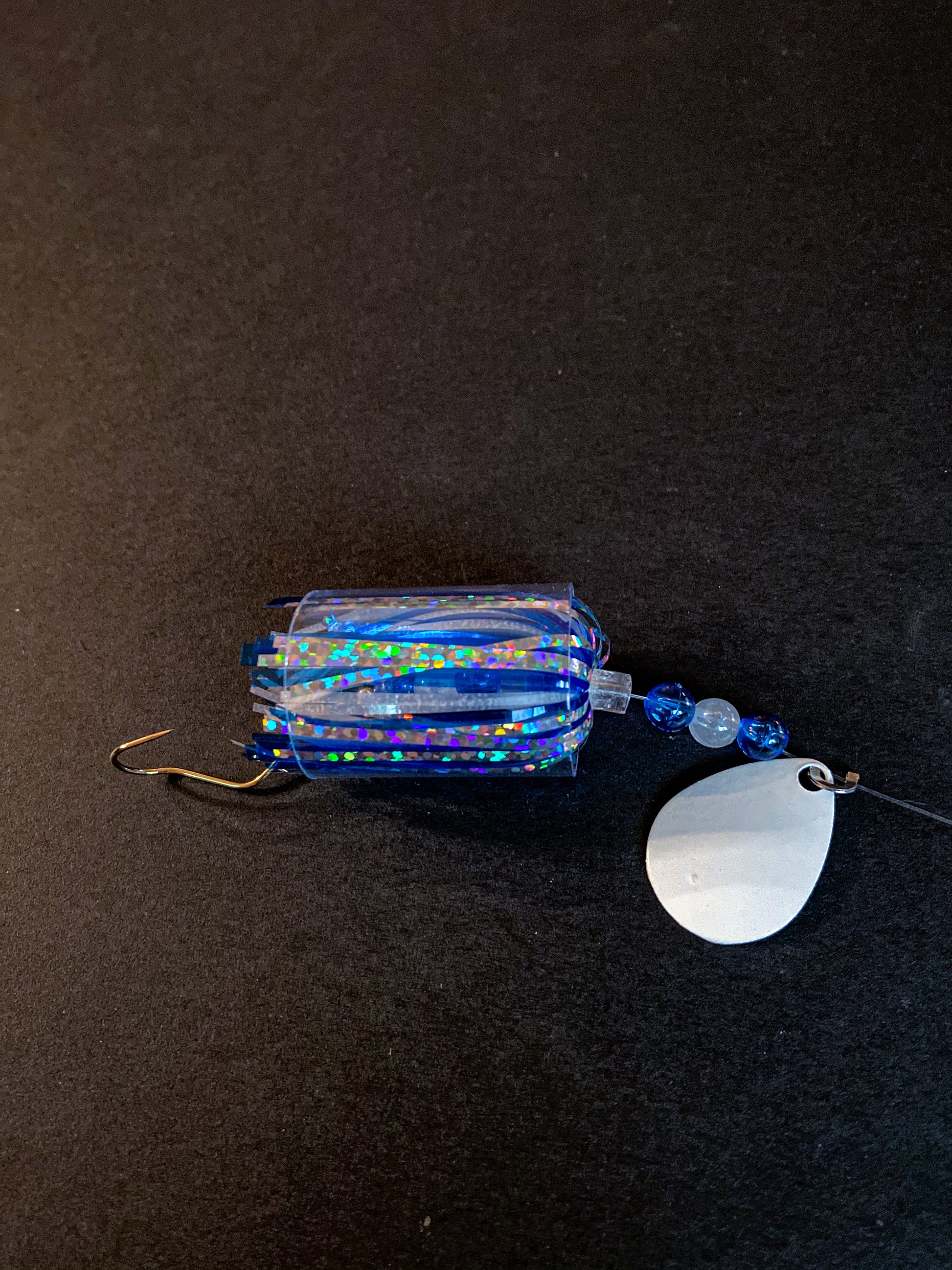 These Superfly Walleye Flies are very popular because of the UV extreme and glow material found only with yours truly. These are tied together with a spinner blade and beads and my favorite the slow death hook.