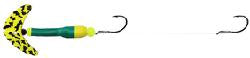 Pop" some big walleye using the Mack's Lure Wally Pop, great for slow trolling - even down to 1/4 mile per hour. The Wally Pop incorporates the patented Smile Blade, a float inside a fluorescent tubing material, secret scent chamber, and a 2-hook crawler harness. This proven setup provides a trolling rig that gives a crawler a very enticing action. When a fish bites, it gets a natural feel from the soft body and this gives you an extra edge to set the hook. Hook size: 2, Leader test: 14, Leader length: 72