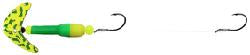 Pop" some big walleye using the Mack's Lure Wally Pop, great for slow trolling - even down to 1/4 mile per hour. The Wally Pop incorporates the patented Smile Blade, a float inside a fluorescent tubing material, secret scent chamber, and a 2-hook crawler harness. This proven setup provides a trolling rig that gives a crawler a very enticing action. When a fish bites, it gets a natural feel from the soft body and this gives you an extra edge to set the hook. Hook size: 2, Leader test: 14, Leader length: 72