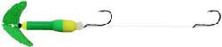 "Pop" some big walleye using the Mack's Lure Wally Pop, great for slow trolling - even down to 1/4 mile per hour. The Wally Pop incorporates the patented Smile Blade, a float inside a fluorescent tubing material, secret scent chamber, and a 2-hook crawler harness. This proven setup provides a trolling rig that gives a crawler a very enticing action. When a fish bites, it gets a natural feel from the soft body and this gives you an extra edge to set the hook. Hook size: 2, Leader test: 14, Leader length: 72.
