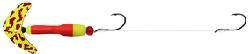 Pop" some big walleye using the Mack's Lure Wally Pop, great for slow trolling - even down to 1/4 mile per hour. The Wally Pop incorporates the patented Smile Blade, a float inside a fluorescent tubing material, secret scent chamber, and a 2-hook crawler harness. This proven setup provides a trolling rig that gives a crawler a very enticing action. When a fish bites, it gets a natural feel from the soft body and this gives you an extra edge to set the hook. Hook size: 2, Leader test: 14, Leader length: 72.