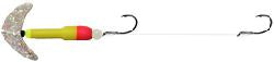 Pop" some big walleye using the Mack's Lure Wally Pop, great for slow trolling - even down to 1/4 mile per hour. The Wally Pop incorporates the patented Smile Blade, a float inside a fluorescent tubing material, secret scent chamber, and a 2-hook crawler harness. This proven setup provides a trolling rig that gives a crawler a very enticing action. When a fish bites, it gets a natural feel from the soft body and this gives you an extra edge to set the hook. Hook size: 2, Leader test: 14, Leader length: 72.