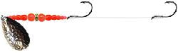 The Double Whammy has a 40-year history as a top producer for walleye, trout and a variety of other species. The Double Whammy has all the attributes of the Wedding Ring spinner plus a 2-hook design producing excellent results especially when used with a worm. Hook size: 2, Leader test: 14, Leader length: 48".