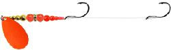 The Double Whammy has a 40-year history as a top producer for walleye, trout and a variety of other species. The Double Whammy has all the attributes of the Wedding Ring spinner plus a 2-hook design producing excellent results especially when used with a worm. Hook size: 2, Leader test: 14, Leader length: 48