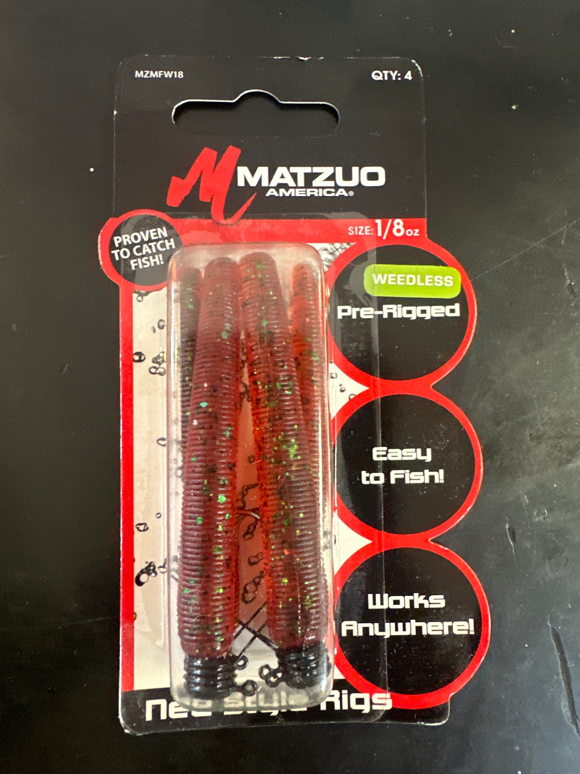Matzuo Ned rig 1/8oz cinnamon green flake weedless