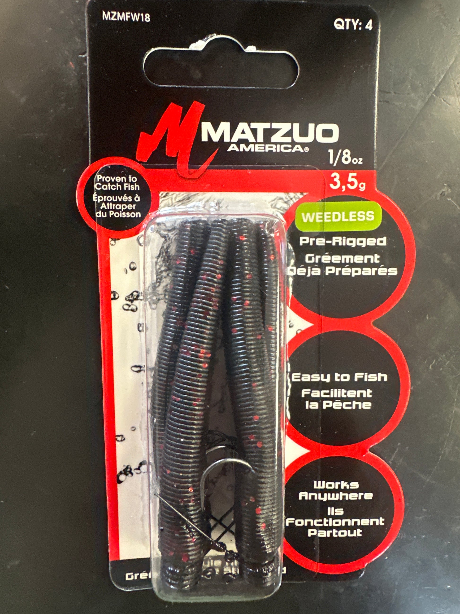 - Weedless rigs are packed 4/pack, non-weedless hooks 5/pack
