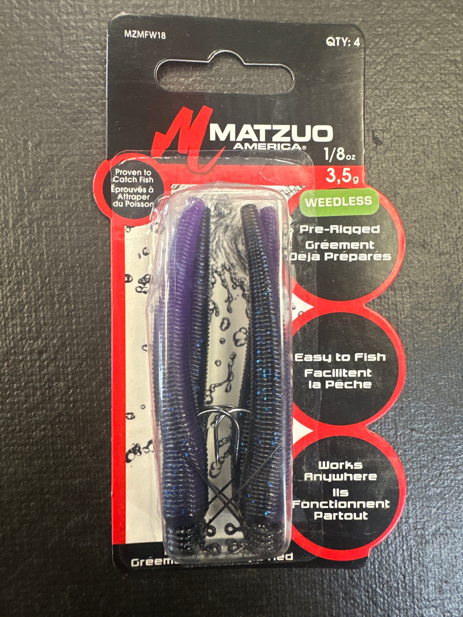 - Weedless rigs are packed 4/pack, non-weedless hooks 5/pack
