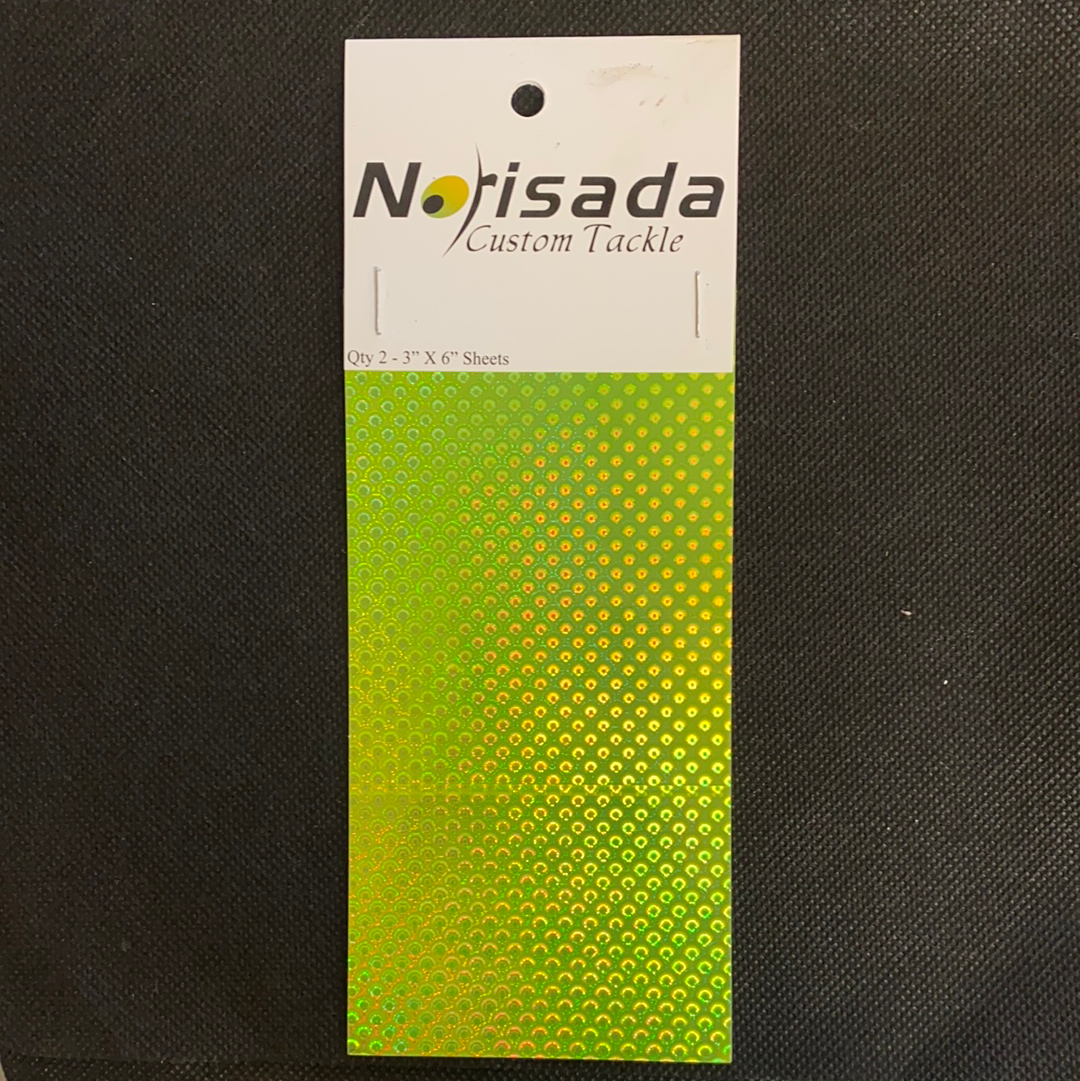 Norisada Custom Tackle bulk tapes add brilliant color to your fishing tackle. Norisada tape works great on dodgers, spoons, and spinner blades. Their wide variety of colors will customize your tackle for any condition. Each package contains two 3" wide by 6" long strips. The self-sticking tape is easy to use. Just peel off the back and apply.