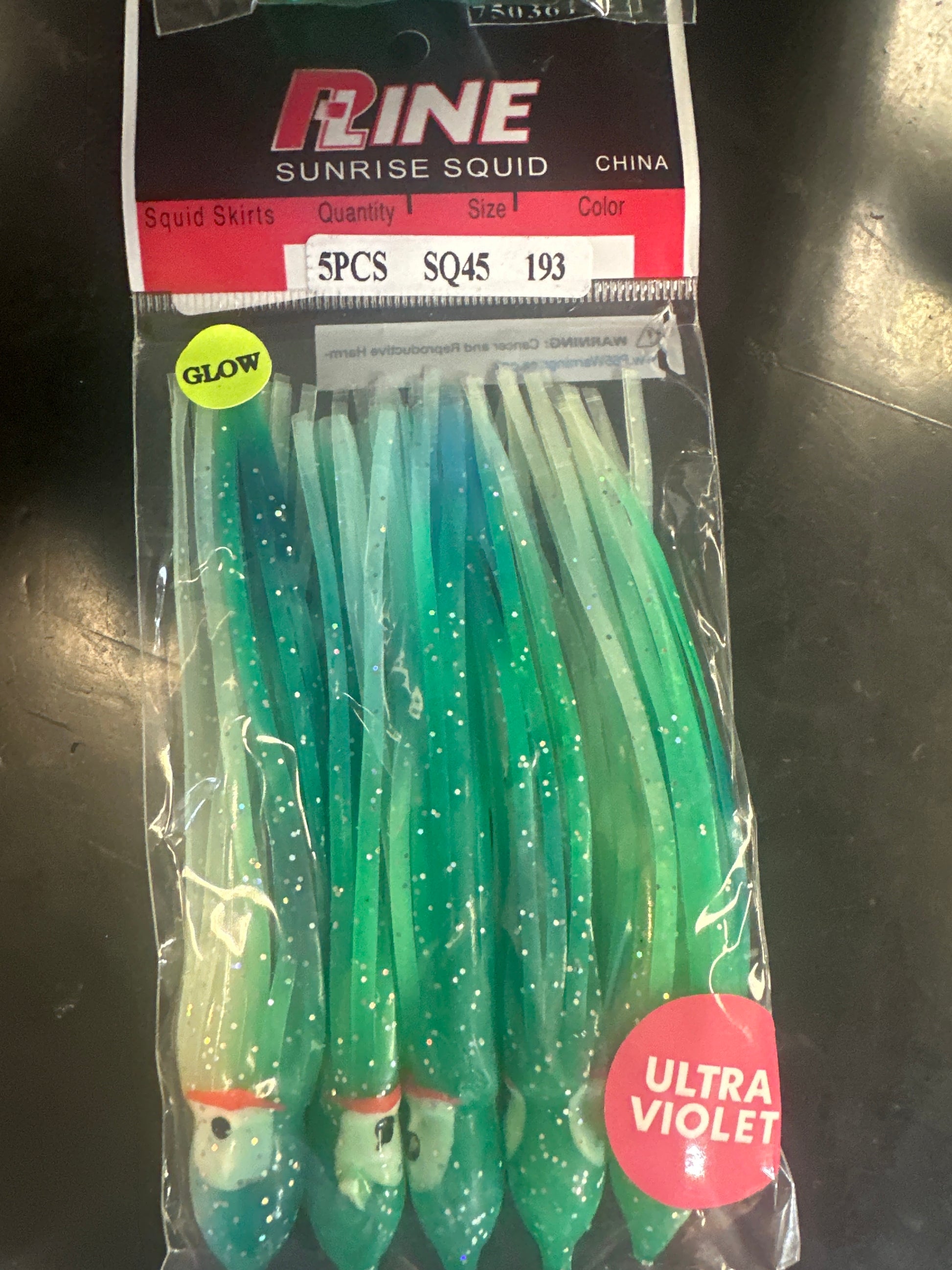 P-Line sunrise squid 4 1/2” glow/green/blue