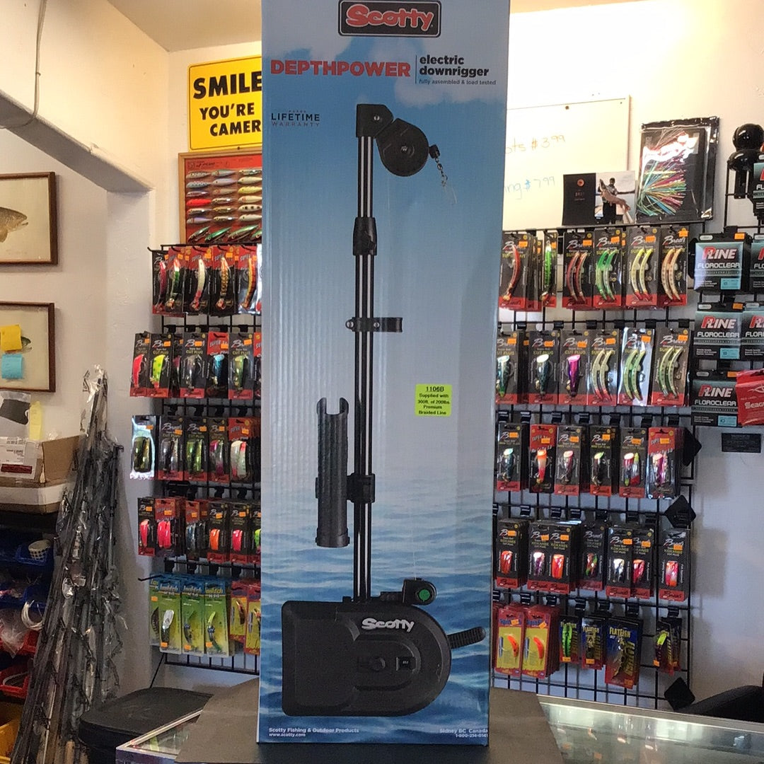 Scotty DepthPower 1106B Electric Downrigger W/ 300FT 200lb Braid, swivel mount included.