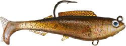 Ideal for big fish applications in both fresh and salt water, the Z-Man Herculez Swimbait features a natural and lifelike swimming action with an exclusive curved paddle tail design. Molded around a 3/8oz weight for improved castability, the Herculez swimbait has the perfect sink rate for fishing a wide range of depths in the water column. Poured with Z-man proprietary 10X tough ElaZtech plastic for extreme durability and longevity, the Herculez resists nicks, cuts, and tears so it will hold up to numerous fish catches. Equipped with heavy-duty 5/0 and 7/0 Mustad Ultra Point hooks, this top hook swimbait offers deep hook penetration and plenty of power to grind fish back to the boat. A hook hangar is also incorporated at the belly so anglers can choose to add a split ring and treble hook when fishing open water. A highly detailed swimbait furnished with 3D eyes and hand-painted color schemes.
