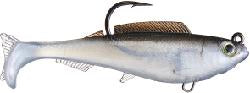 Ideal for big fish applications in both fresh and salt water, the Z-Man Herculez Swimbait features a natural and lifelike swimming action with an exclusive curved paddle tail design. Molded around a 3/8oz weight for improved castability, the Herculez swimbait has the perfect sink rate for fishing a wide range of depths in the water column. Poured with Z-man proprietary 10X tough ElaZtech plastic for extreme durability and longevity, the Herculez resists nicks, cuts, and tears so it will hold up to numerous fish catches. Equipped with heavy-duty 5/0 and 7/0 Mustad Ultra Point hooks, this top hook swimbait offers deep hook penetration and plenty of power to grind fish back to the boat. A hook hangar is also incorporated at the belly so anglers can choose to add a split ring and treble hook when fishing open water. A highly detailed swimbait furnished with 3D eyes and hand-painted color schemes.